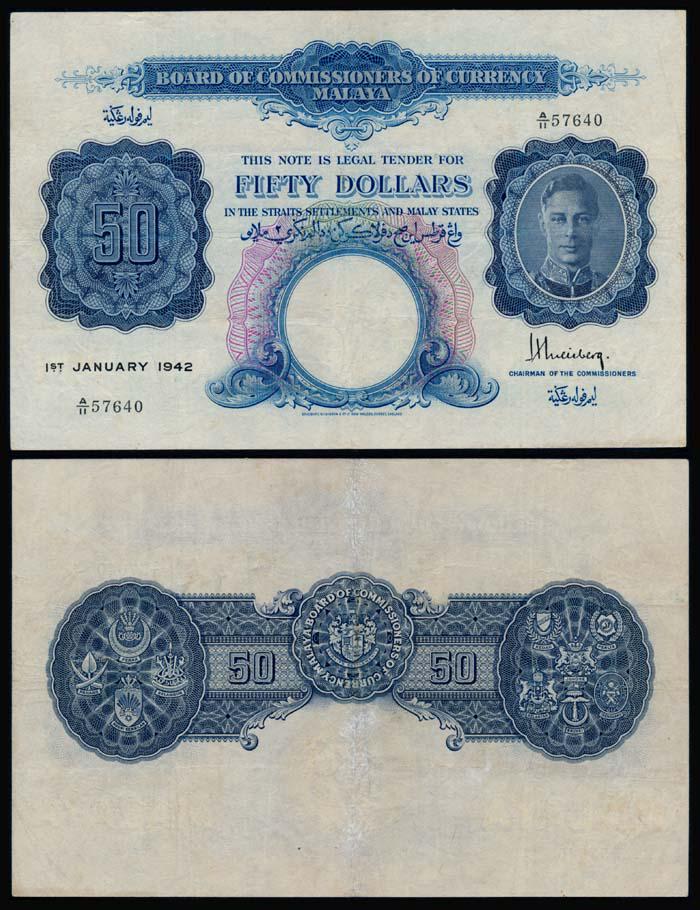 Malaya $50 1942 KGVI