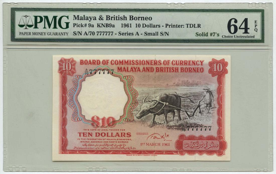 MALAYA & BRITISH BORNEO $10 1961 Solid 777777
