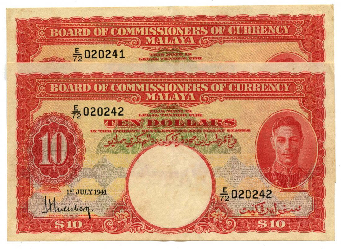 MALAYA George VI: $10 1941 Consecutive