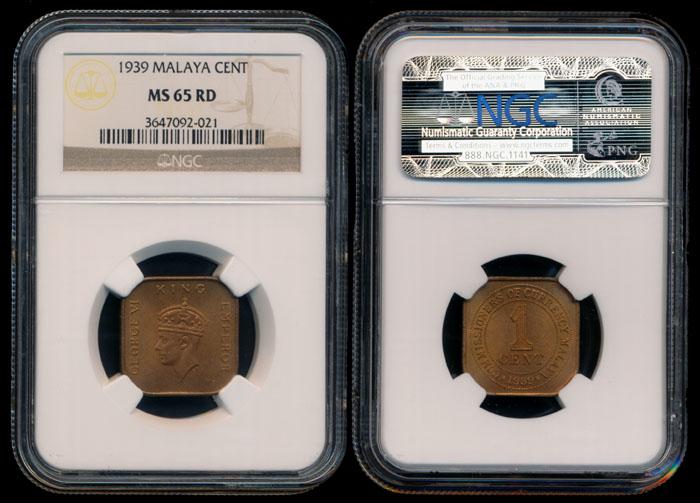 Malaya KGVI Cent 1939 NGC MS65RD
