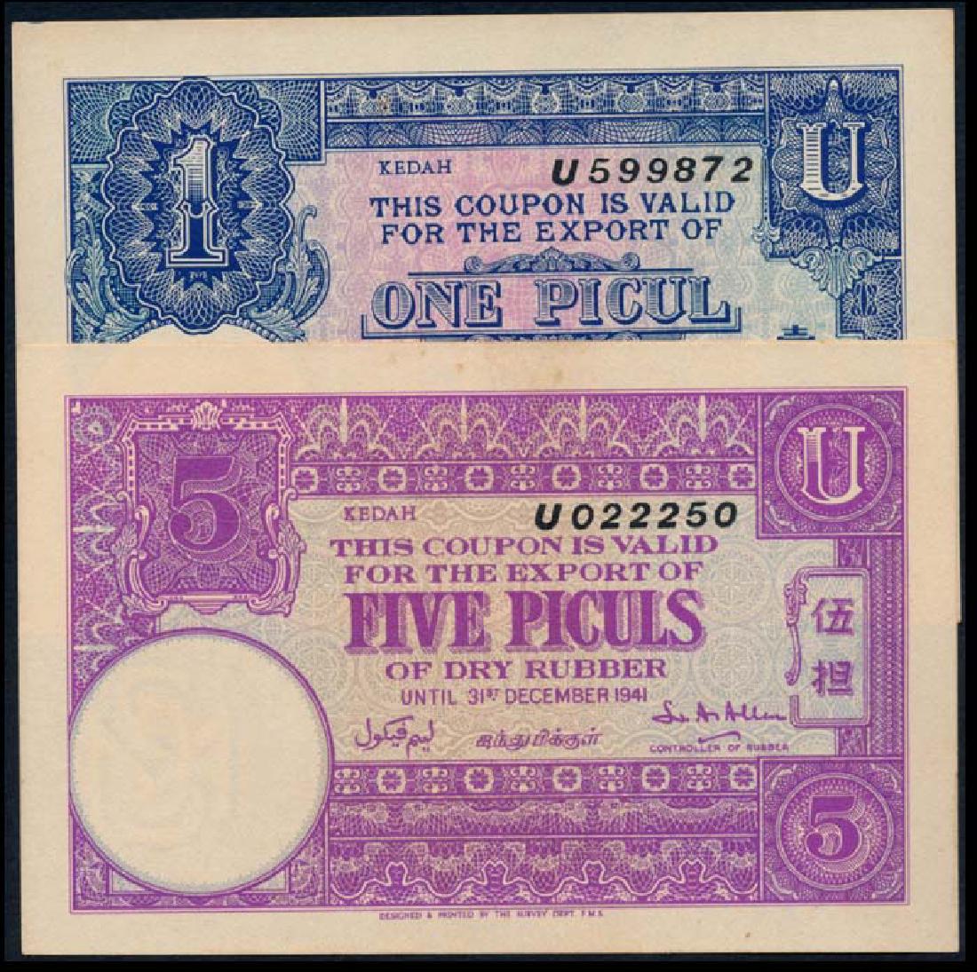 Malaya Rubber Export Coupons 1-5 Piculs 1941