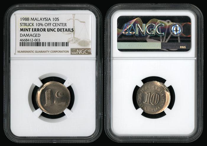 Malaysia 10 Sen 1988 mint error NGC
