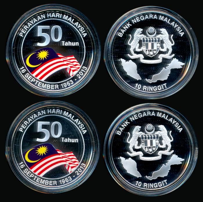 Malaysia 2x10 Ringgit 2013 proof silver