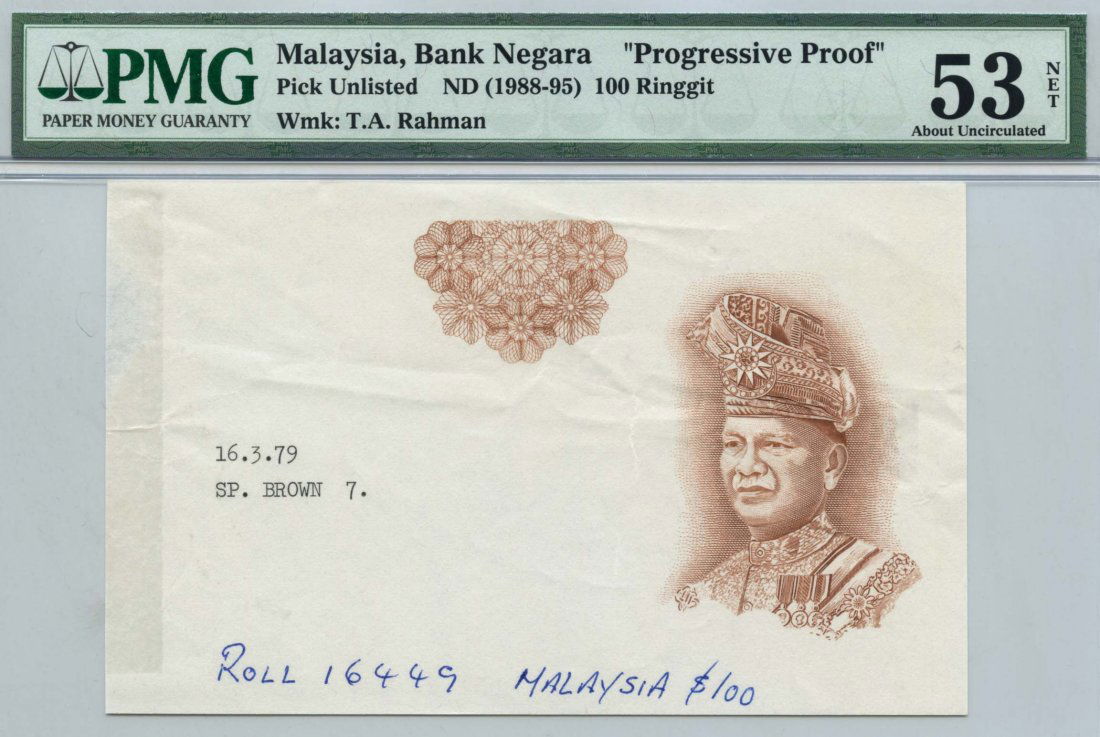 MALAYSIA 3rd Series: RM100 1979 Progressive Proof