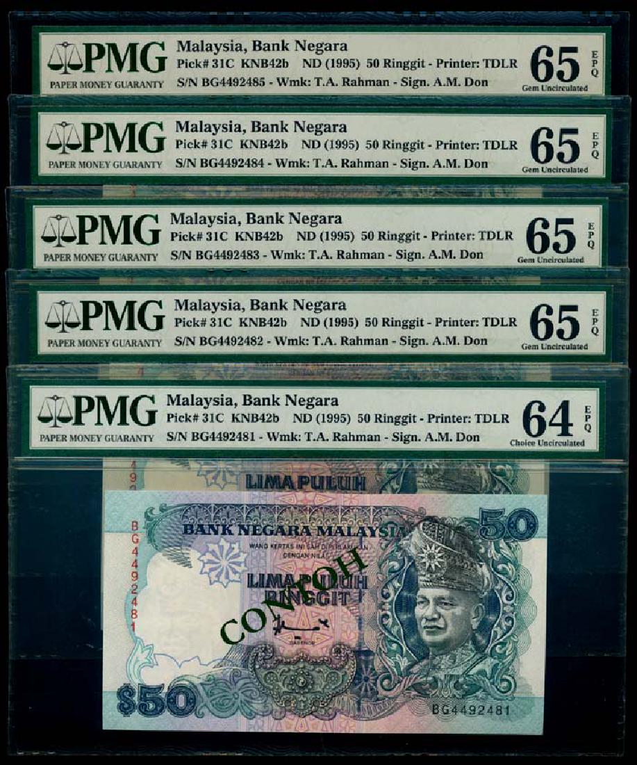 Singapore 5x$5 1989 ship 1st prefix PMG