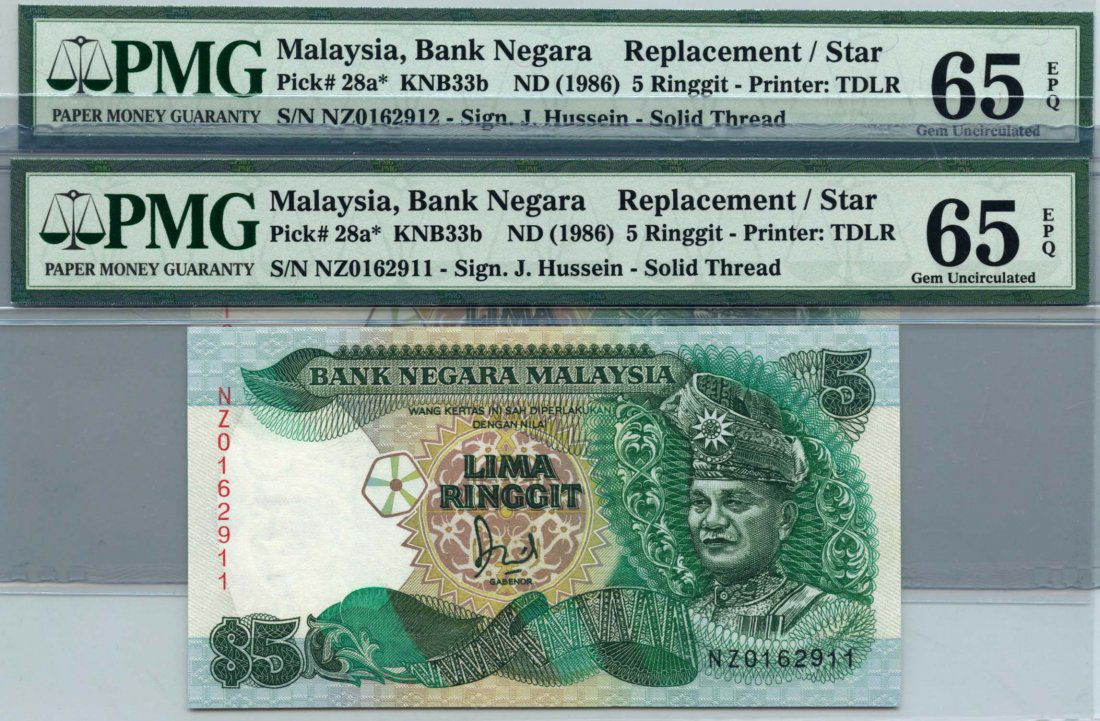 MALAYSIA 6th Series: RM5 1986 Replacement, consecutive