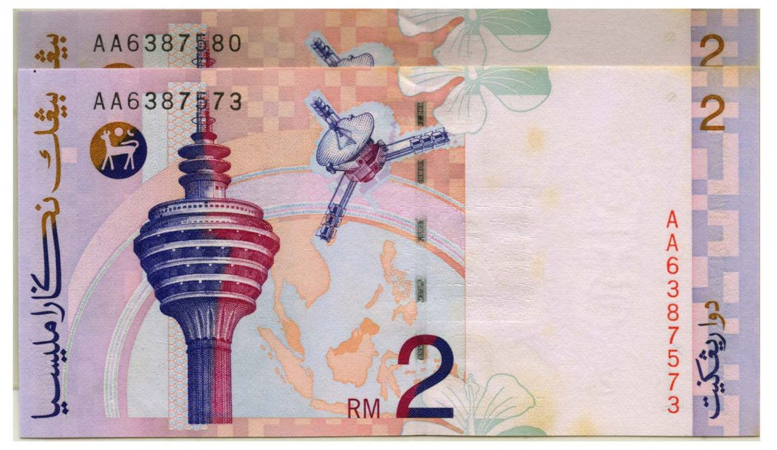 MALAYSIA 8th Series: RM2 1996 First prefix, Consecutive
