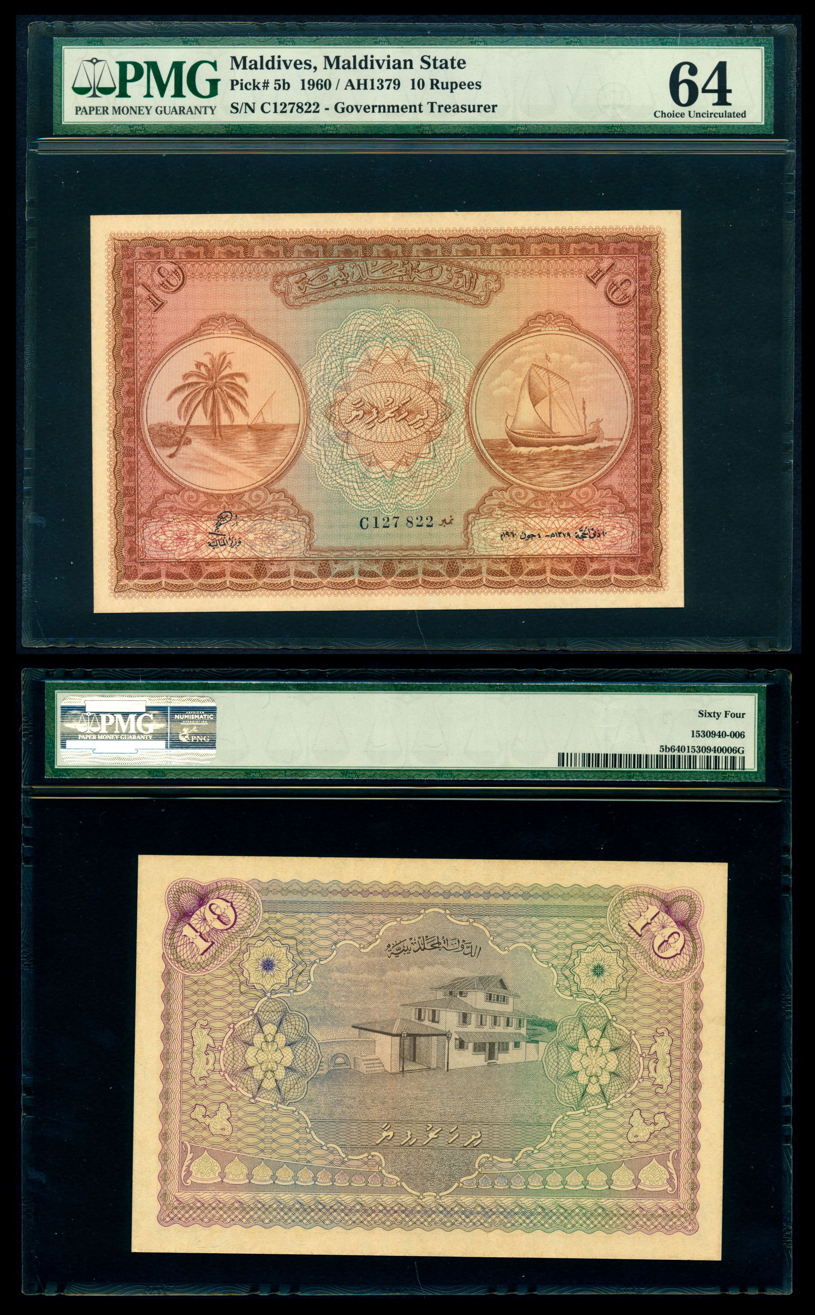Maldives 10 Rupees 1960 PMG