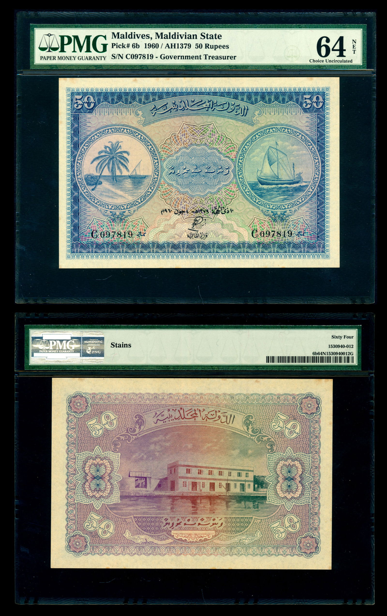 Maldives 50 Rupees 1960 PMG