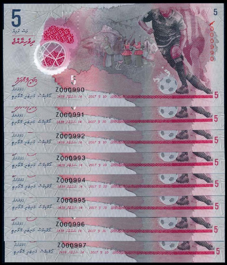 Maldives 8x5 Rufiyaa 2017 replacement low no