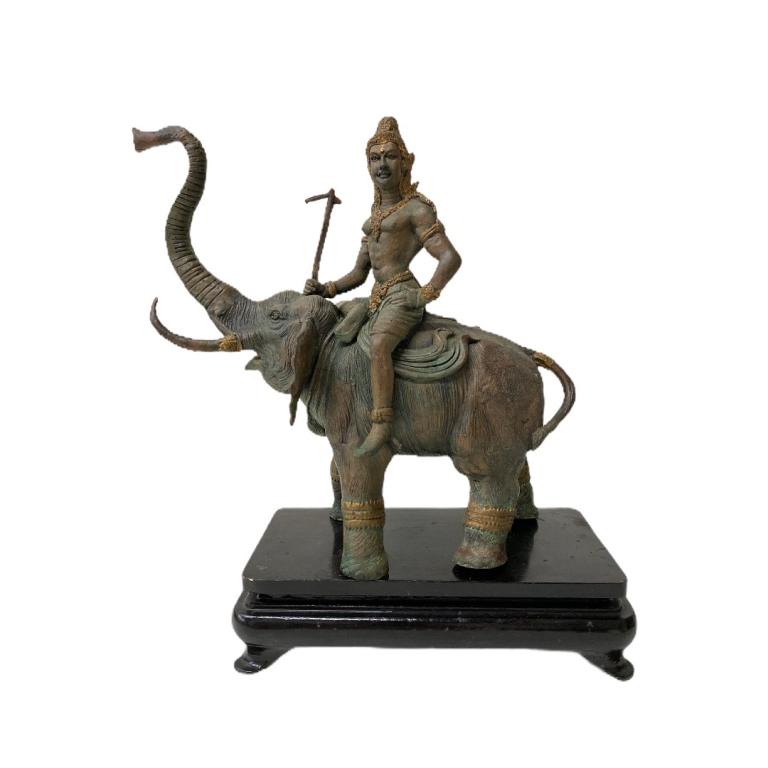Thaibetian Man Sitting on Elephant Sculpture