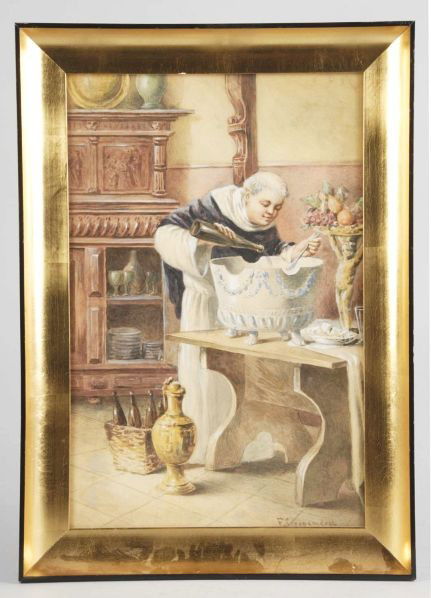 Man Standing in Robe Stirring Pot.