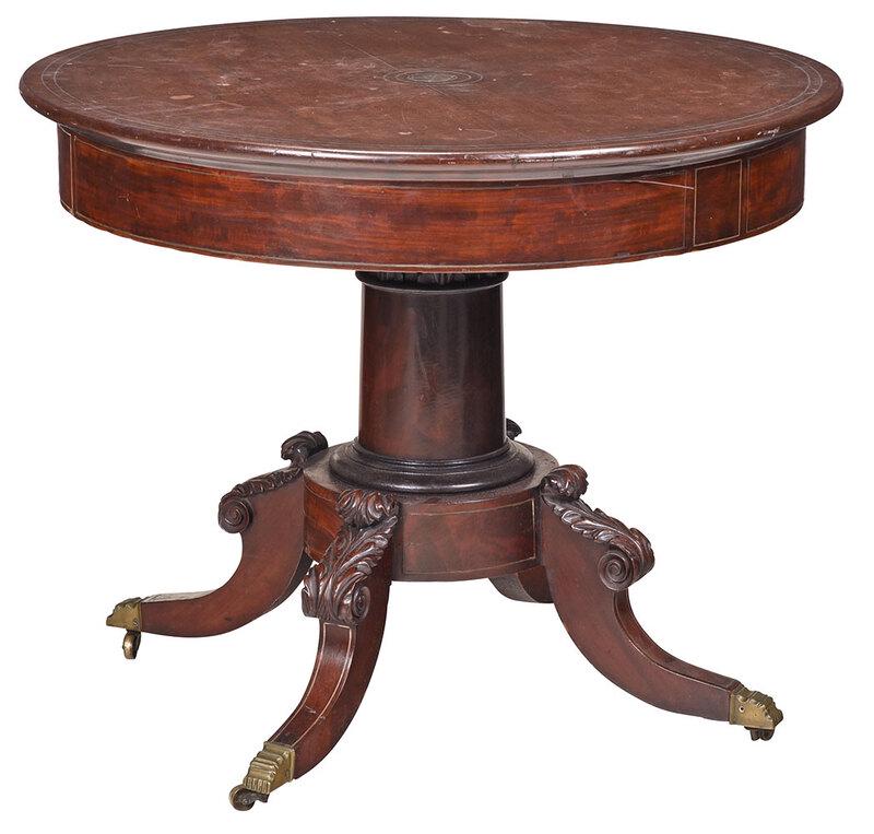 American Stenciled Mahogany and Marble-Top TableMar 29, 2026Chippendale Style Mahogany Three Pedestal Dining Table, 2 Leaves 20th Cent., H 30" W 48" L 113.5"2 days LeftEmpire-Style Mahogany and Parcel-Gilt TableMar 28, 2026American Rococo Revival Oak Dining TableMar 29, 2026Large Empire Mahogany and Marble-Top Center TableMar 28, 2026Regency Mahogany Drum TableMar 28, 2026REGENCY STYLE MAHOGANY BRONZE MOUNTED LOW TABLE HAVING AN EGLOMISE GLASS TOP AND A GILT CARVEDMar 24, 2026American Empire Flame Mahogany Sofa Table with Carved Acanthus and Paw Feet Circa 18405 days LeftEnglish Queen Anne Mahogany Tilt-Top TableMar 28, 2026ENGLISH SELECT MAHOGANY AND MAHOGANY VENEER EXPANSION DINING TABLE Early 19th Century Height 28.75".Apr 09, 2026ENGLISH REGENCY STYLE MAHOGANY PEDESTAL DINING TABLE4 days LeftRegency Mahogany and Leather Drum TableMar 29, 2026Antique American Empire Carved Mahogany Banquet Table with 6 Leaves c1880Mar 24, 2026Queen Anne Mahogany Fold-Over Games TableMar 29, 2026Regency Style Round Center Table Figural Mahogany Gold Gilt Accents3 days Leftattributed R.J. Horner, Renaissance Revival Walnut and Marble Top Center TableMar 26, 2026