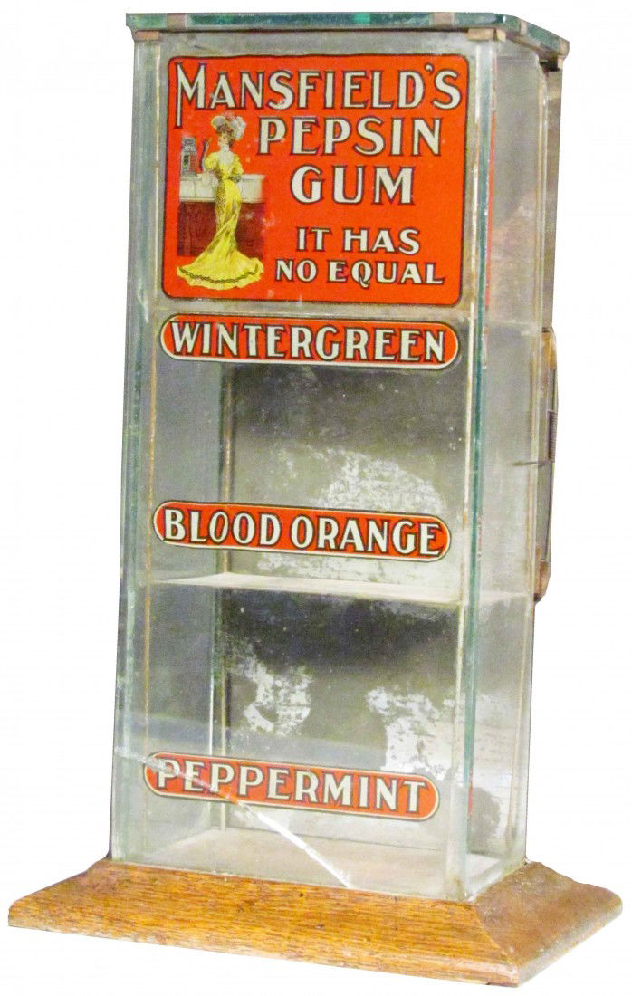 Advance Model D 1-cent gumball machineMar 28, 2026Quality Chewing Gum 1-cent vendorMar 28, 2026Large store display glass bottleMar 28, 2026Glass House Studio Glass Perfume BottleFeb 25, 2026Fisher's Flavoring Extracts Curved Glass Storefront Display CaseFeb 28, 2026BEECH-NUT COUNTERTOP TIN CHEWING GUM DISPLAYFeb 17, 20261950 Pepsi Cola More Bounce To The Ounce Single Sided Porcelain SignMar 21, 2026Nugrape Soda "A Flavor You Can't Forget" SST Thermometer w/ Twin BottlesMar 21, 2026Inland Gren Top Tube Repair DisplayMar 14, 20261920's Every Day Drink Orange Crush Embossed Single Sided Tin SignMar 20, 2026J.P. PRIMLEY'S CALIFORNIA FRUIT AND PEPSIN CHEWING GUM DISPLAY CASE378 Lots AwayCanada Dry Grapefruit Enjoy True Fruit Flavor Single Sided Tin SignMar 21, 20261950 Pepsi Cola More Bounce To The Ounce Single Sided Porcelain SignMar 21, 20261992 Coca Cola Napkin DispenserMar 07, 2026Wrigley's Doublemint Chewing Gum Framed Paper AdvertisingMar 20, 2026Group of Assorted Vintage Snack TinsMar 07, 2026