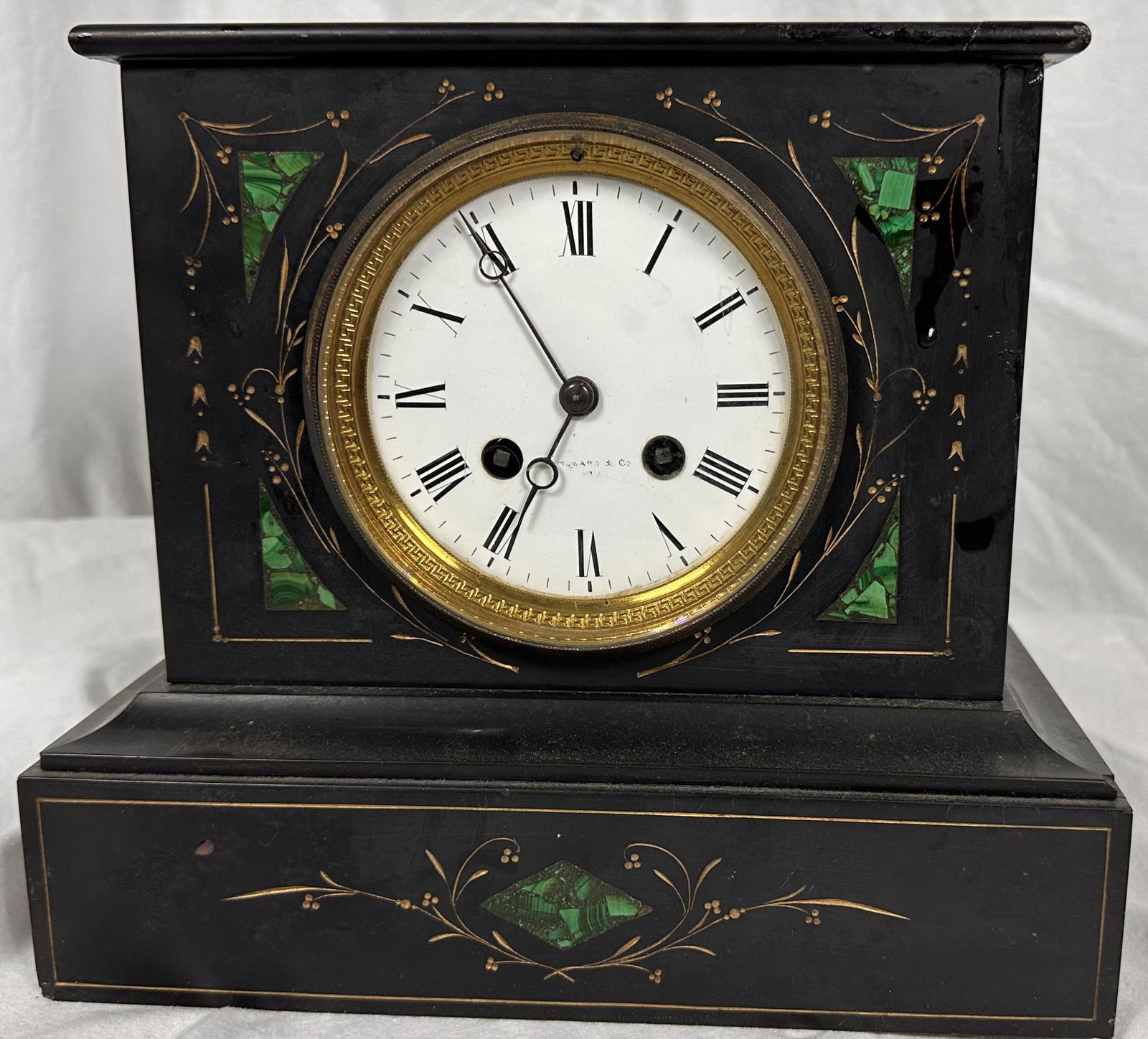 Mantle Clock by E. Howard with Embedded Malachite Details