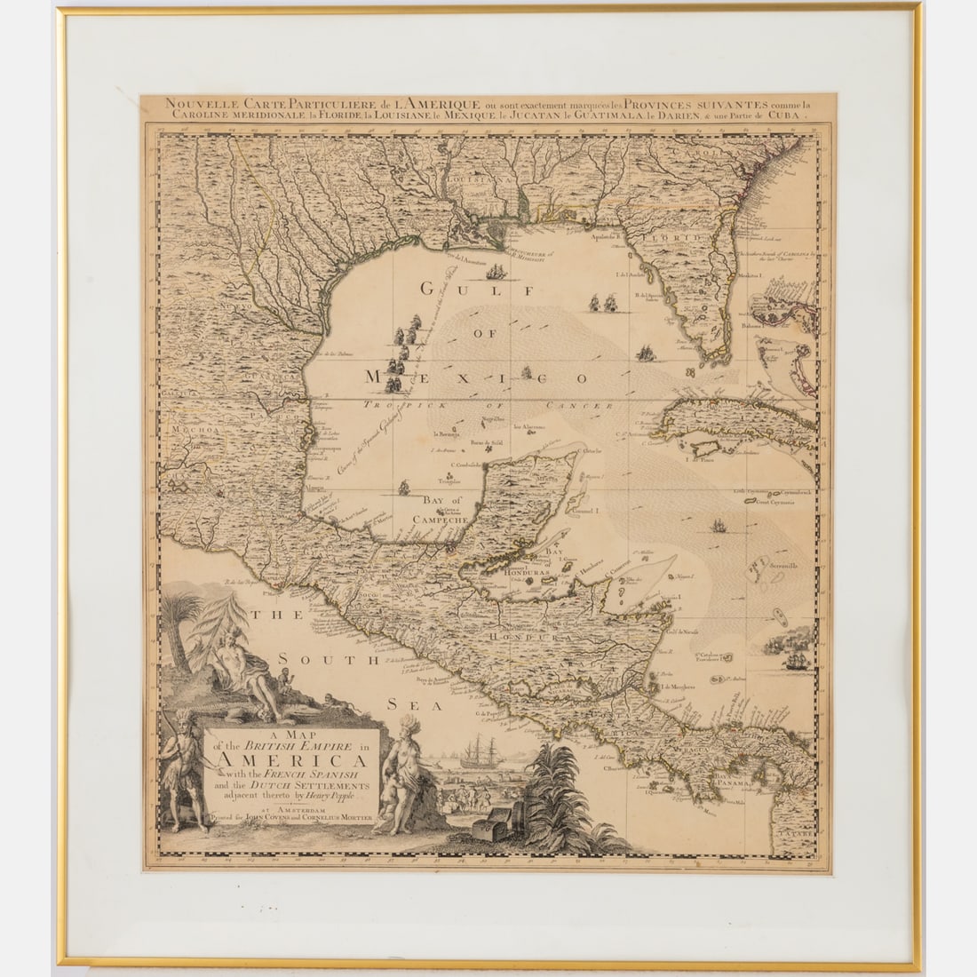 SoldPopple, Henry,(Britain, 16?? - 1743) A Map of The British Empire in America with French, Spanish and(d. 1743) Printed In Amsterdam For L Covens And C. Mortier c.1755, Sight View 19" x 18-1/2", Overall 21" x 26" "Carte Particuliere de l'Amerique Septentrionale."See Sold Price