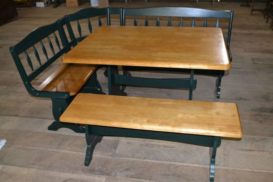 SoldHand-Painted Restaurant MiniaturesHand-painted 8-piece kitchen set made by Tynie Toy including 5 benches (most around 4 1/4" high x 4" wide x 1" deep), two tables, and sideboard.See Sold Price