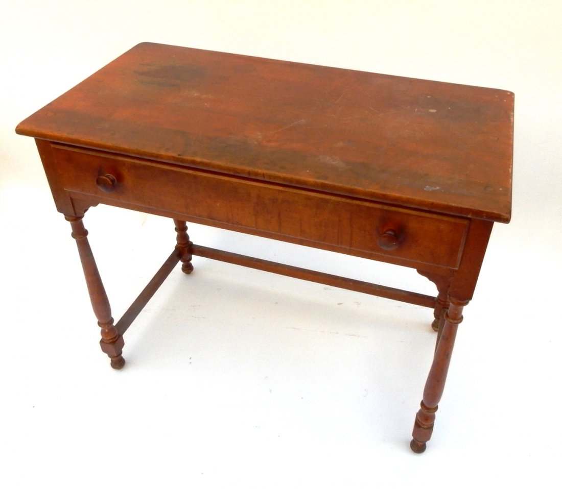 Colonial style slant front writing desk w/one drawer, turned legs. Interior has one drawer & 41 day LeftFrench Chestnut Single Drawer Writing Table9 hrs LeftFrench Cherry Writing Table with Drawer9 hrs LeftAntique American Country Pine Or Maple Work Table With Turned Legs And Drawer 19"X30"X30"Mar 08, 2026Cherry Two-Drawer Work Table, Kentucky Region, Mid-19th CenturyMar 07, 2026Early 19th Century Country Farmhouse Table / DeskMar 07, 2026American Primitive Schoolmaster’s Lift-Top Desk, PennsylvaniaMar 07, 2026Southern Cherry One-Drawer Work Table with Spiral Turned Legs, ca.1840-60Mar 07, 2026Antique Dark Wood Writing Desk with Turned Legs5 days LeftBritish Pine 2 Drawers Writing Table / DeskMar 02, 2026Federal Cherry One-Drawer Work Table, American, ca. 1810–1830Mar 07, 2026EARLY ONE DRAWER TAVERN TABLE5 days LeftFrench Empire Style Mahogany Writing Table / DeskMar 07, 2026Mission Oak two drawer desk2 days LeftANTIQUE AMERICAN WOODEN FOLDING WRITING DESKMar 07, 2026Vintage Arts and Crafts Mission Oak Writing Desk4 days Left
