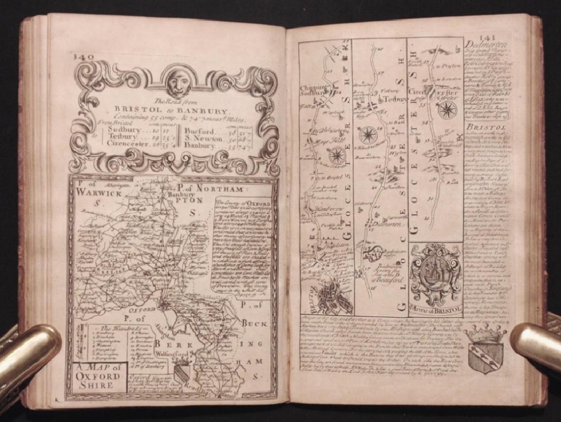 SoldBRITISH HISTORICAL TRAVEL ATLAS / GUIDEBOOK VOLUMEBRITISH HISTORICAL TRAVEL ATLAS / GUIDEBOOK VOLUME, Emanuel Bowen and John Owen, "Britannia Depicta", lacking title page, but presumed date 1720, presumed first edition, impressed leather boards withSee Sold Price
