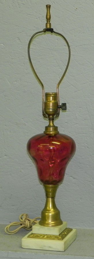 Marble Base Cranberry Glass Lamp
