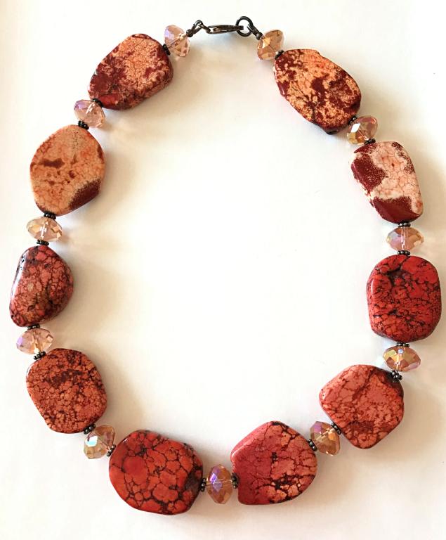 MARBLE CORAL COLORED STONE NECKLCLACE
