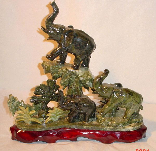 SoldARTHUR COURT ELEPHANT MARBLE SERVING BOARD 19"ARTHUR COURT ELEPHANT FAMILY MARBLE SERVING BOARD -This is an impressive and substantial Arthur Court Designs serving board or platter, featuring a long, rectangular slab of deep green marbled stone (See Sold Price