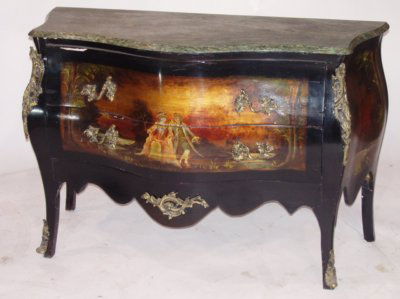 Marble top Bombe Vernis Martin commode