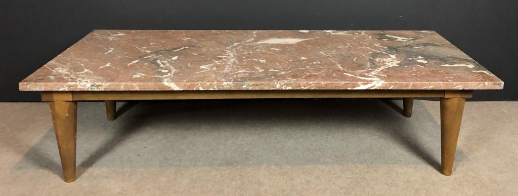 MCM MARBLE TOP COFFEE TABLE WITH TAPERED WOODEN LEGS WITH BRASS CUFFED FEETPeddlers Auction$10Feb 28, 2026