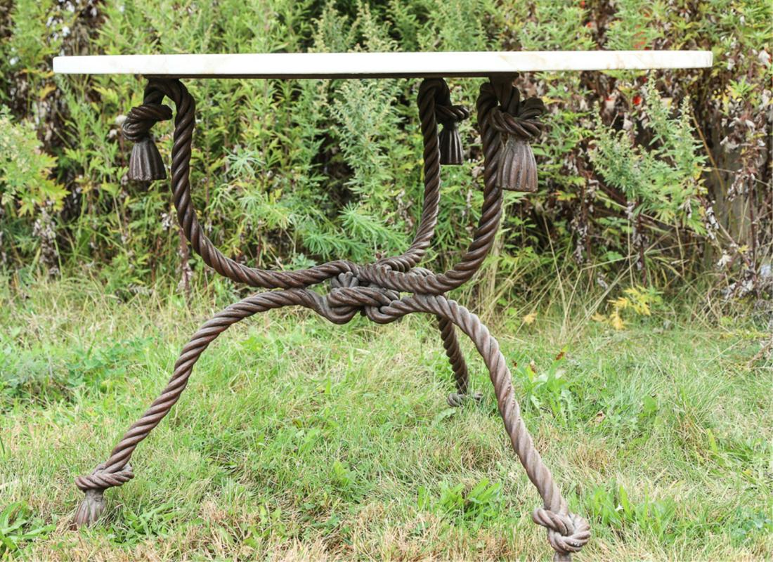MARBLE TOP TABLE with ROPE & TASSLE CAST BASE