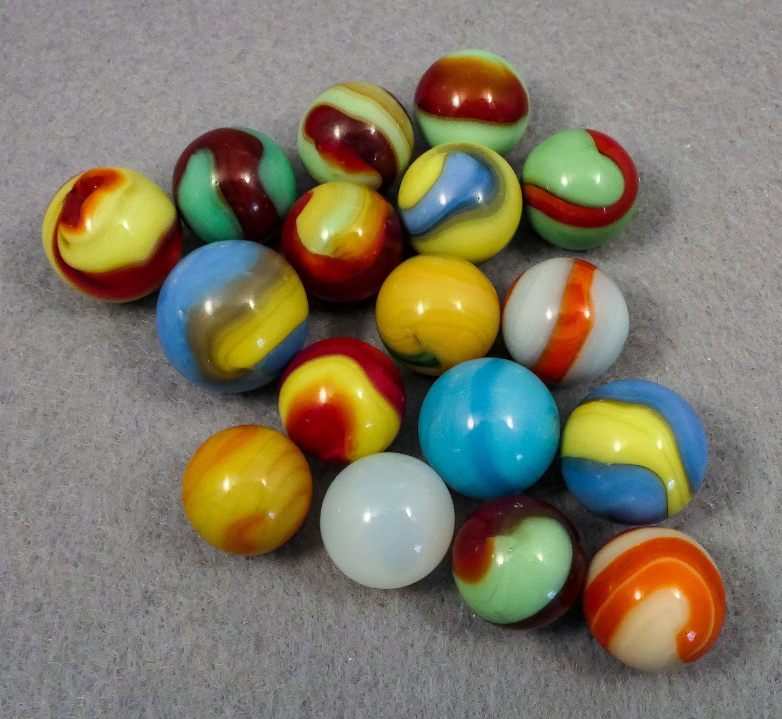 Marbles: AKRO AGATE COMPANY, Corkscrew. 17 marbles.