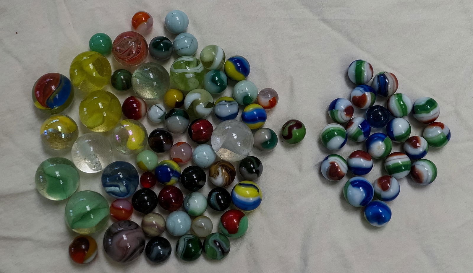 Marbles: ASSORTED MACHINE MADE. 78 marbles.