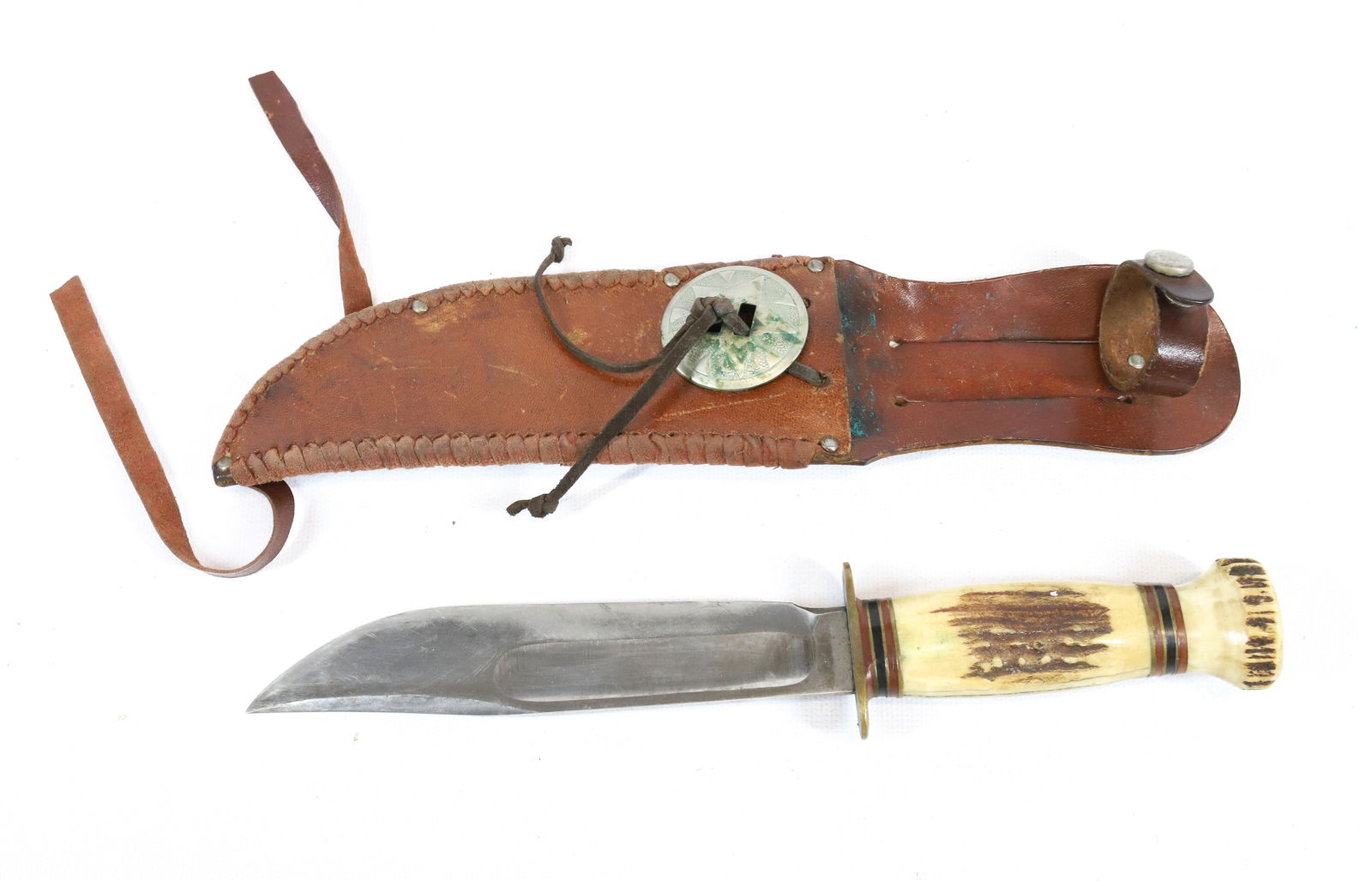 Mexican made Bowie Knife with Leather SheathVintage Marble's Expert Fixed Blade KnifeMar 22, 2026Vintage Marbles Woodcraft Fixed Blade Knife With SheathMar 22, 2026Large bone handled bowie knife in leather sheath, 14", few minor rust spots on blade4 days LeftHandmade Clip Point Bowie Knife in leather sheath, appears to have a horn handle with 6" blade, 11Mar 28, 2026Vintage KA-BAR Knife With Leather Sheath 7"3 days LeftBuck 119A Fixed Blade Knife7 days LeftHandmade Clip Point Bowie Knife in leather sheath, appears to have a horn handle with inlaidMar 28, 2026Handmade Clip Point Bowie Knife in leather sheath, appears have a horn handle with 8" blade, 13"Mar 28, 2026Handmade Clip Point Bowie Knife in leather sheath, appears to have a rosewood handle, heavy brassMar 28, 2026(2) Fixed Blade Hunting Knives7 days LeftFixed Blade Knife With Leather Sheath 10"3 days LeftCutlery Salvation KnifeMar 14, 2026B. Svoboda Solingen Stag Horn Handle Knife7 days LeftDamascus Full Tang Raptor Talon Blade With Carved Alabaster Handle And Stitched Leather SheathMar 12, 2026Handmade Antler Handle Bowie Knife4 hrs Left