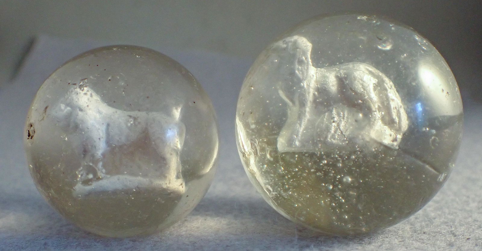 Marbles. SULPHIDE. 2 marbles. Dog. Lion.