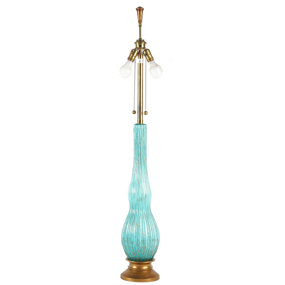 SoldMarbro Murano Aqua Art Glass Table LampItalian, mid 20th century. A Murano blown glass aqua and opal table lamp with ribbed detail. Marbro sticker on upper hardware. Approx. 40".See Sold Price