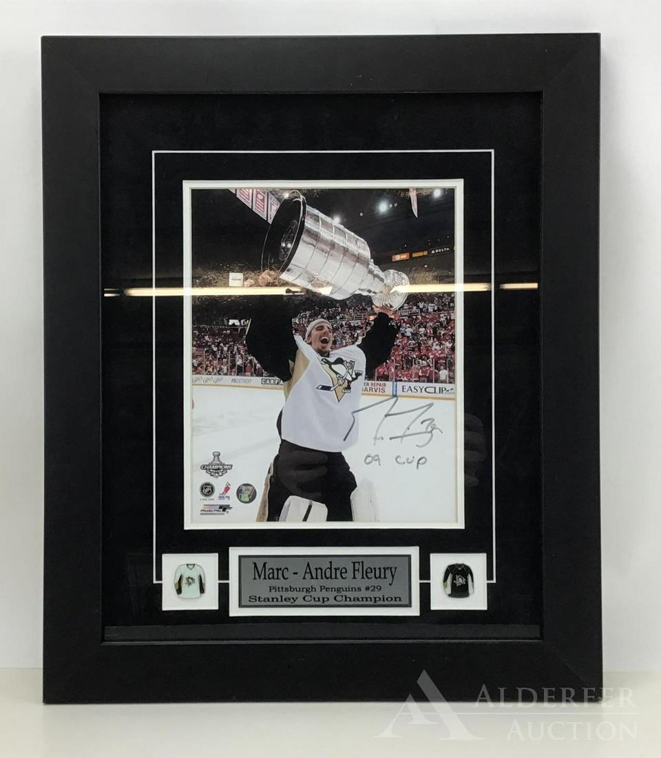 SoldMarc-Andre Fleury Autographed PhotoPittsburgh Penguins goalie Marc-Andre Fleury autographed 8"X10" color action photo w/Reich PM authentication sticker & certificate (custom framed & double matted)See Sold Price