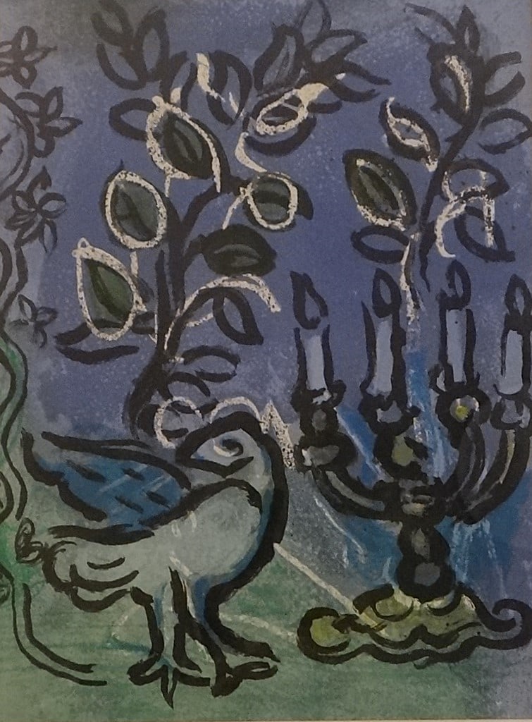 Marc Chagall Colored Lithograph: “The Candlestick