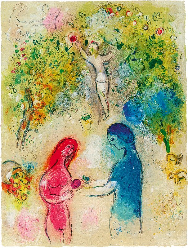 SoldDaphne and Chloe Lithograph by Marc ChagallAfter Marc Chagall (18870), Daphne and Chloe, signed in the stone, lower right, matted, framed, and glazed. 19" x 14" (sheet) 23 1/2" x 18 1/4" (framed). Provenance: Renaissance Fine Arts, UniversitySee Sold Price