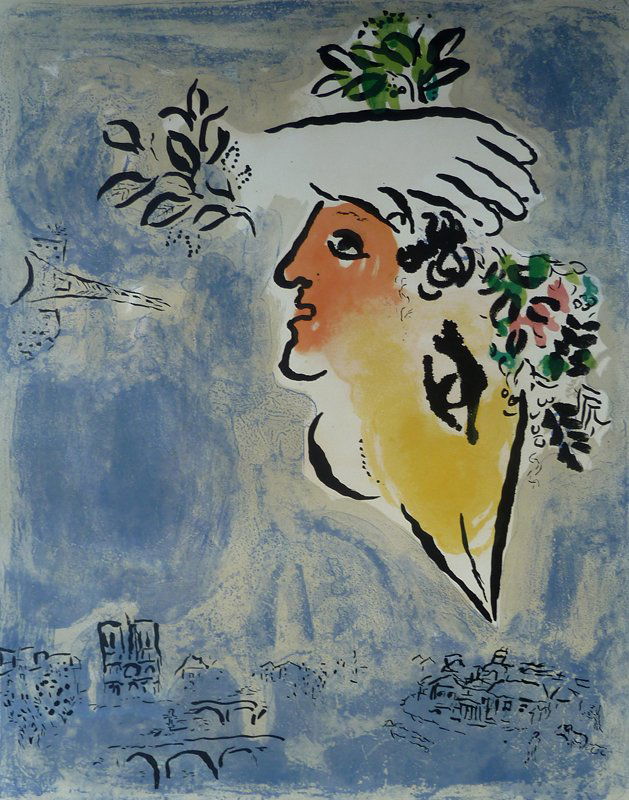 Bl MARC CHAGALL Le Visage Bleu 34" x 22.5" Lithograph 1967 Modernism MulticolorSEUYCO4.6(68)$5102 days Left