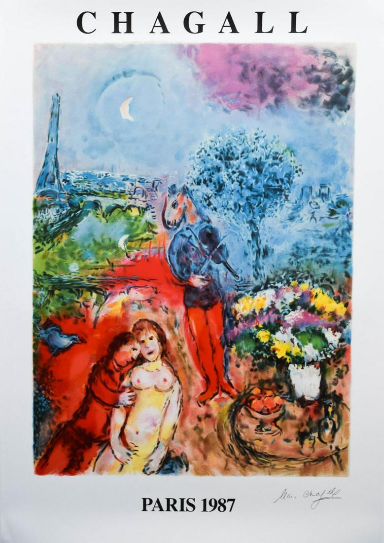 SoldAfter Marc Chagall Offset LithographDESCRIPTION: Offset lithograph on paper poster after Marc Chagall. Bears a pencil signature at lower right. CIRCA: Mid - late 20th century ORIGIN: - DIMENSIONS: (Sight) H: 27.5" W: 20.5" (Frame) H: 29See Sold Price