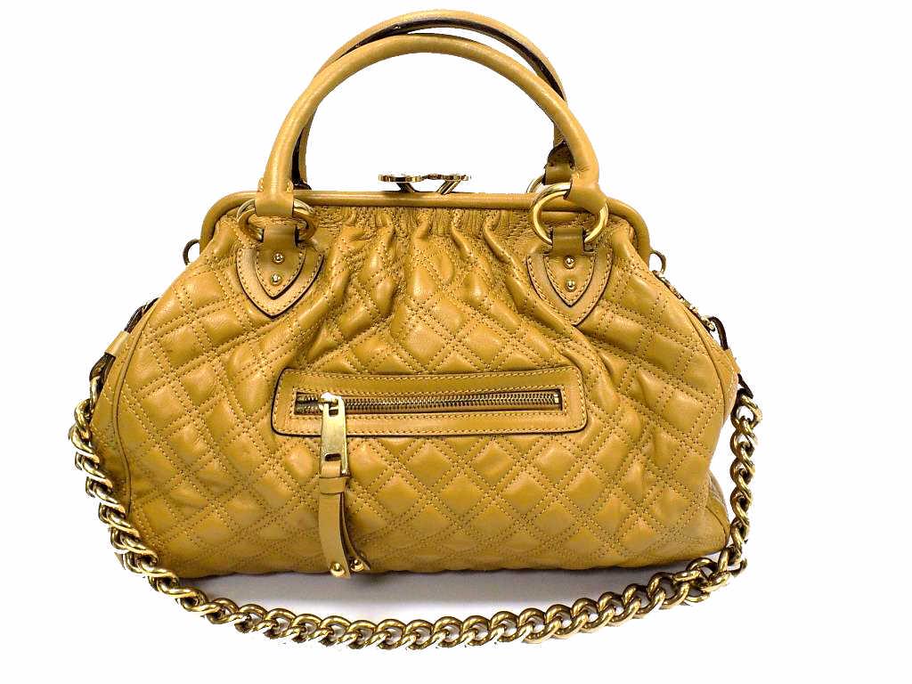 SoldMARC JACOBS DESIGNER LEATHER HAND BAGMarc Jacobs Designer Hand Bag. Diamond Stitched Camel Tan Leather with Gold Plated Hardware. Includes Signed Cloth Storage Bag and Original Tags, Inserts & $1,275.00 Price Tag. Minor wear, near new coSee Sold Price