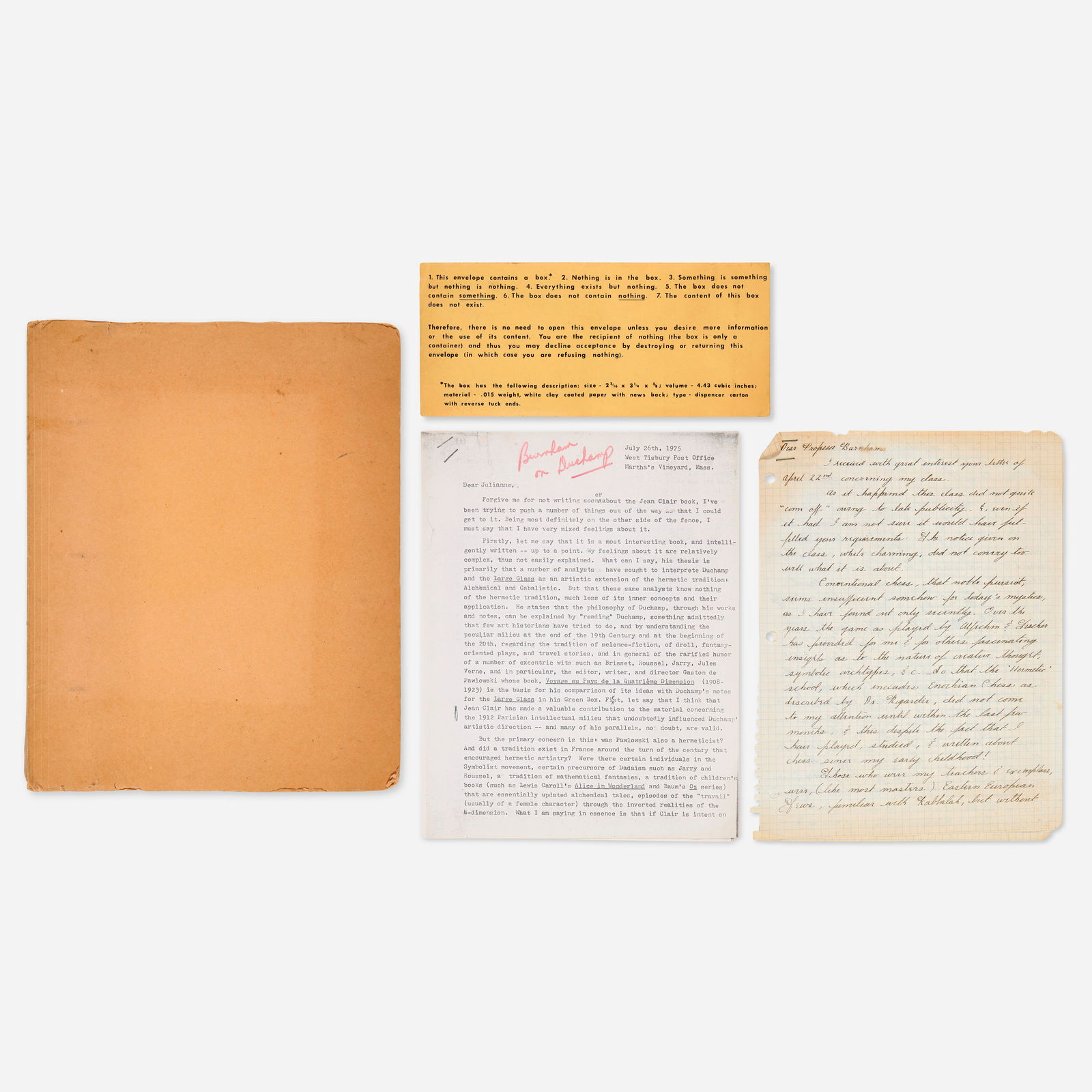 Marcel Duchamp and Jack Burnham ephemera