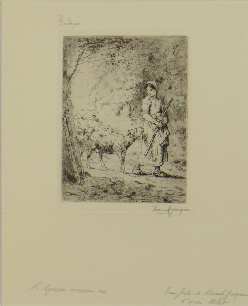 Marcel Jacque, French Etching "Barbizon" Signed ,