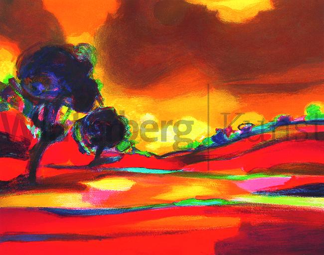 MARCEL MOULY: Arbres devant un Ciel rouge.