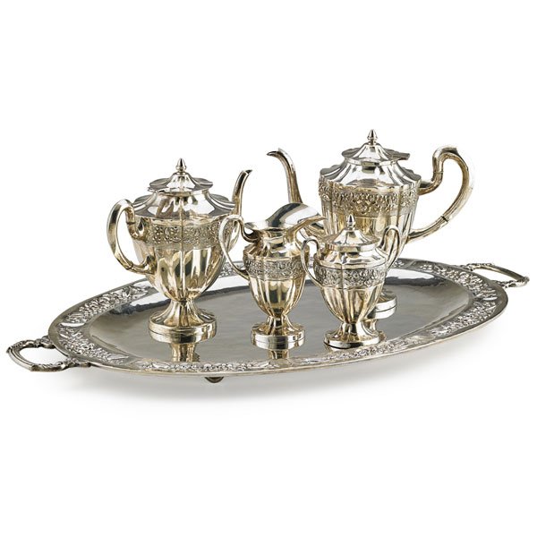 (Lot of) 3 Sterling Silver Service Items, 2 by Emil Hermann6 days LeftVintage WM A Rogers Silverplated Tea Pot & CreamerFeb 25, 2026Tiffany & Co. Antique Victorian Silver Plate Coffee or Tea Service Set17 hrs LeftA Poole sterling silver 'Georgian' tea and coffee serviceMar 03, 2026(4pc) GORHAM STERLING COFFEE SERVICE6 days Left6PC STERLING TEA SERVICE, INTERNATIONAL, 133 TOWMar 07, 2026Reed and Barton "Regent" Tea & Coffee Service Set (6)Mar 07, 2026Rococo Style Silver Plate Coffee And Tea Set (7-piece), C. Mid-late 20th CenturyFeb 26, 2026Tuttle Onslow 6pc Silverplate Tea Set Vintage 1960s3 days LeftVintage Victorian Silver-plated Tea Set 5pcMar 05, 2026Silver Plate Tea Set With Orientalist Motifs And Associated Tray (5-piece)Feb 26, 20261940s Silver Plate Coffee and Tea Service by F. B. Rogers - 4 Piece SetSILVERPLATE TEA AND COFFEE SERVICE6 days LeftSterling Punch Bowl, 12 Cups, Ladle, and TrayFeb 25, 2026Four Piece Silverplated Sheffield English Teaset WithFeb 26, 2026Tiffany & Co. Antique Repousse Silver Plate Coffee or Tea Service Set17 hrs Left