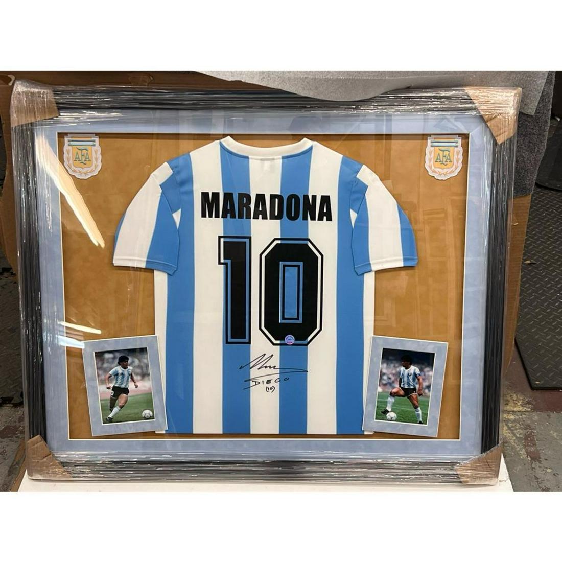 SoldDiego Maradona Signed Framed Argentina Jersey COADiego Maradona Signed Autographed Framed Argentina Jersey with COASee Sold Price
