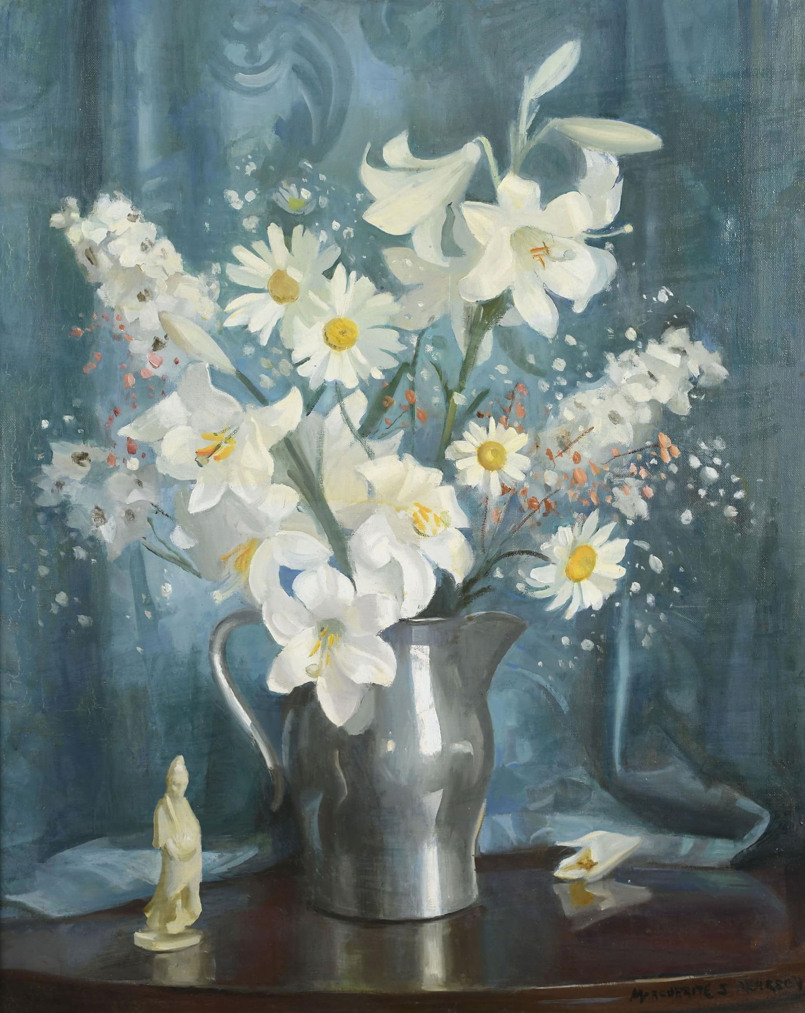 MARGUERITE S. PEARSON O/C, WHITE FLOWERS.