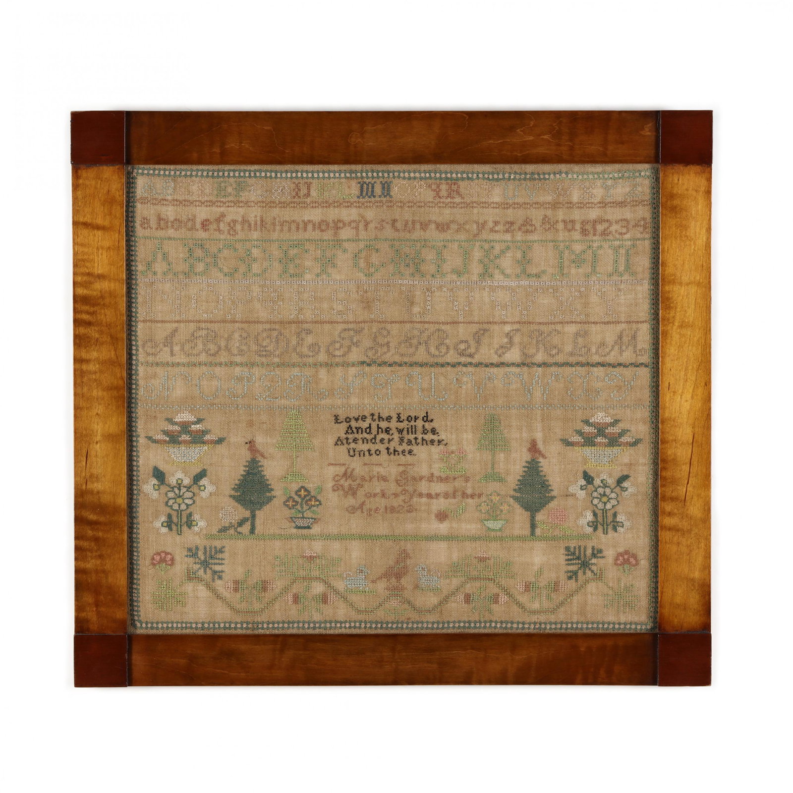 Maria Gardner's Framed Needlework Sampler, 1823