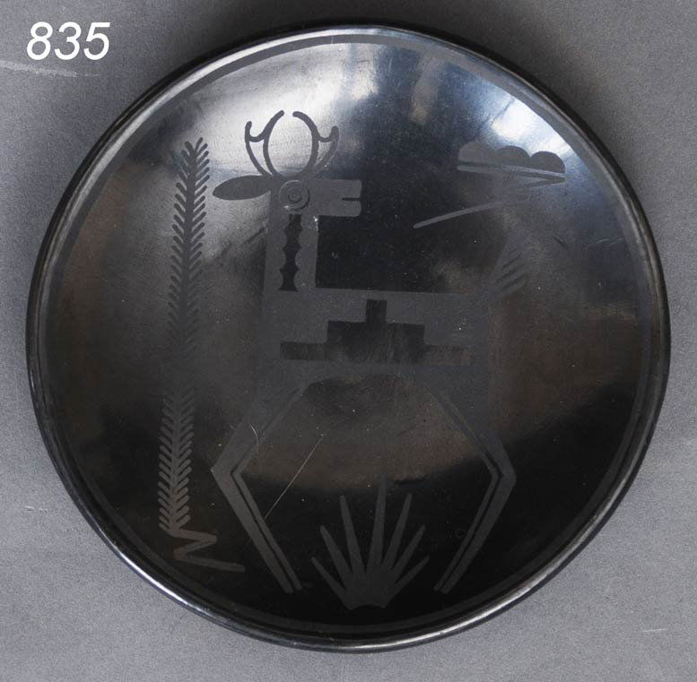 MARIA MARTINEZ BLACKWARE DISH WITH DEER