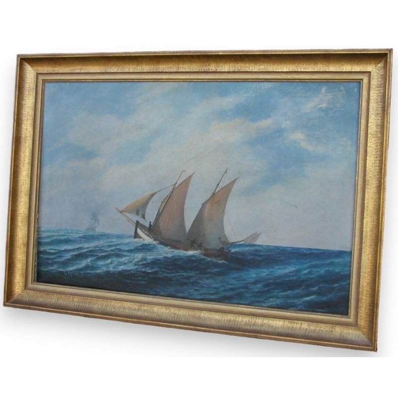Sign "Winch", Sailboat at the Dock, Oil on Canvas PaintingFeb 26, 2026French Victorian Oil Painting Marine Barquentine Ship Charles James Off Dunkirk19th Century Marine Oil Painting Spring Breeze & Squally Garwick Bay Isle Of ManVictorian Oil Painting Marine Brigg Ship Susannah Thrift With Pilot St NicholasLarge 19th Century Oil Painting Marine Clipper Jute Ship Slieve Roe Off CalcuttaOil Painting 5 Masted Steel Hull Sailing Ship Potosi Navigating Drakes PassageAntique early 20C French oil painting signedApr 12, 2026Laurite Jorensen (Europe,mid 20C) oil paintingMay 17, 2026H G Westlund (20C) oil paintingMay 17, 2026Charles Robert Patterson (American, 1875-1958) - The Sea WitchMar 07, 2026AMERICAN SCHOOL (19th Century,), Ship in distress., Oil on canvas, 20" x 28.25". Framed 27" x 35".Feb 26, 2026American School (20th Century), Ships at Sea, Signed14 hrs LeftVintage Estate Artist Signed Seascape Framed Oil PaintingFeb 26, 2026SAILING SHIP PORTRAIT SIGNED2 days Left19TH C. AMERICAN SCHOOL MARINE OIL.7 days LeftHenry Hallam "Ships at Sea" Oil on CanvasApr 07, 2026