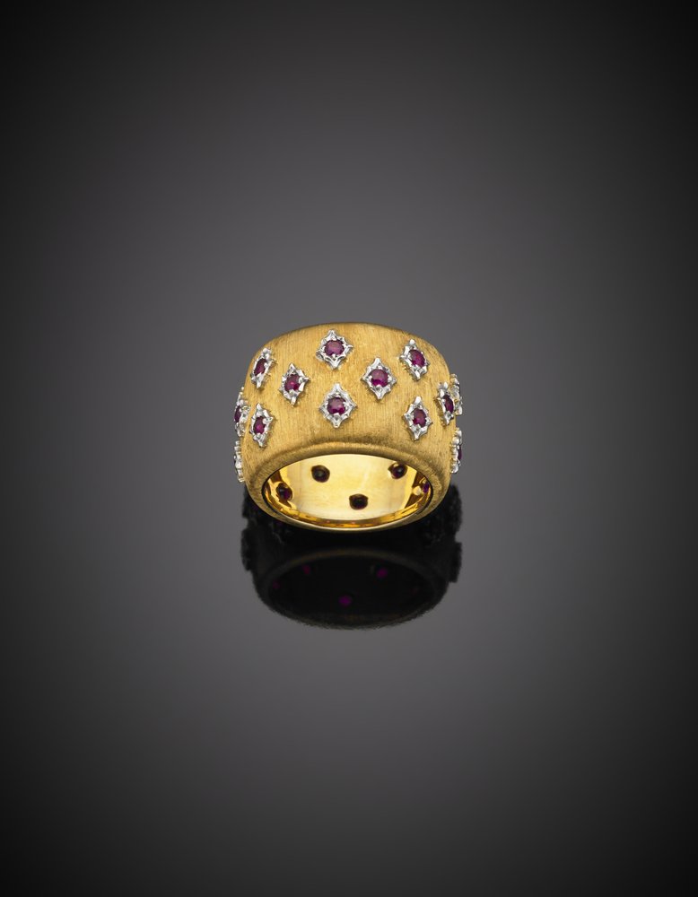 MARIO BUCCELLATI Yellow and gold and ruby band ring,